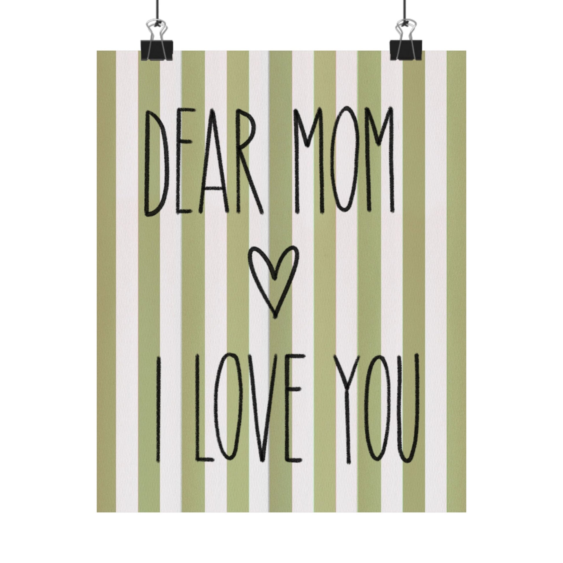 Green Poster “Dear Mom I Love You” - Woman Poster Wall Art - Mom Lovely Posters