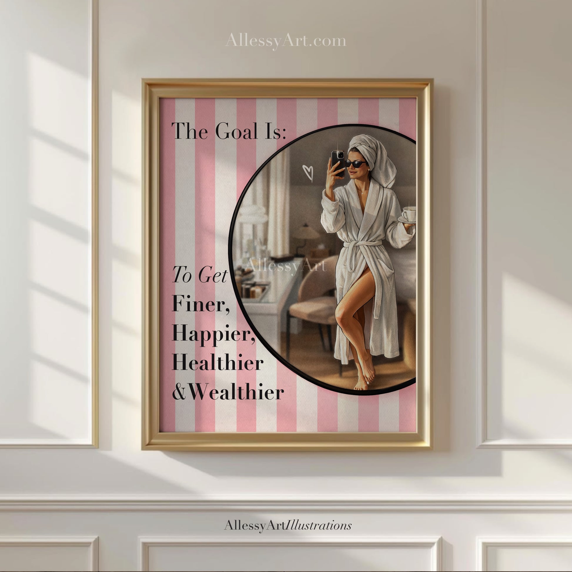 Pink Poster “The Goal Is To Get Finer, Happier, Healthier & Wealthier” - Woman Poster Wall Art