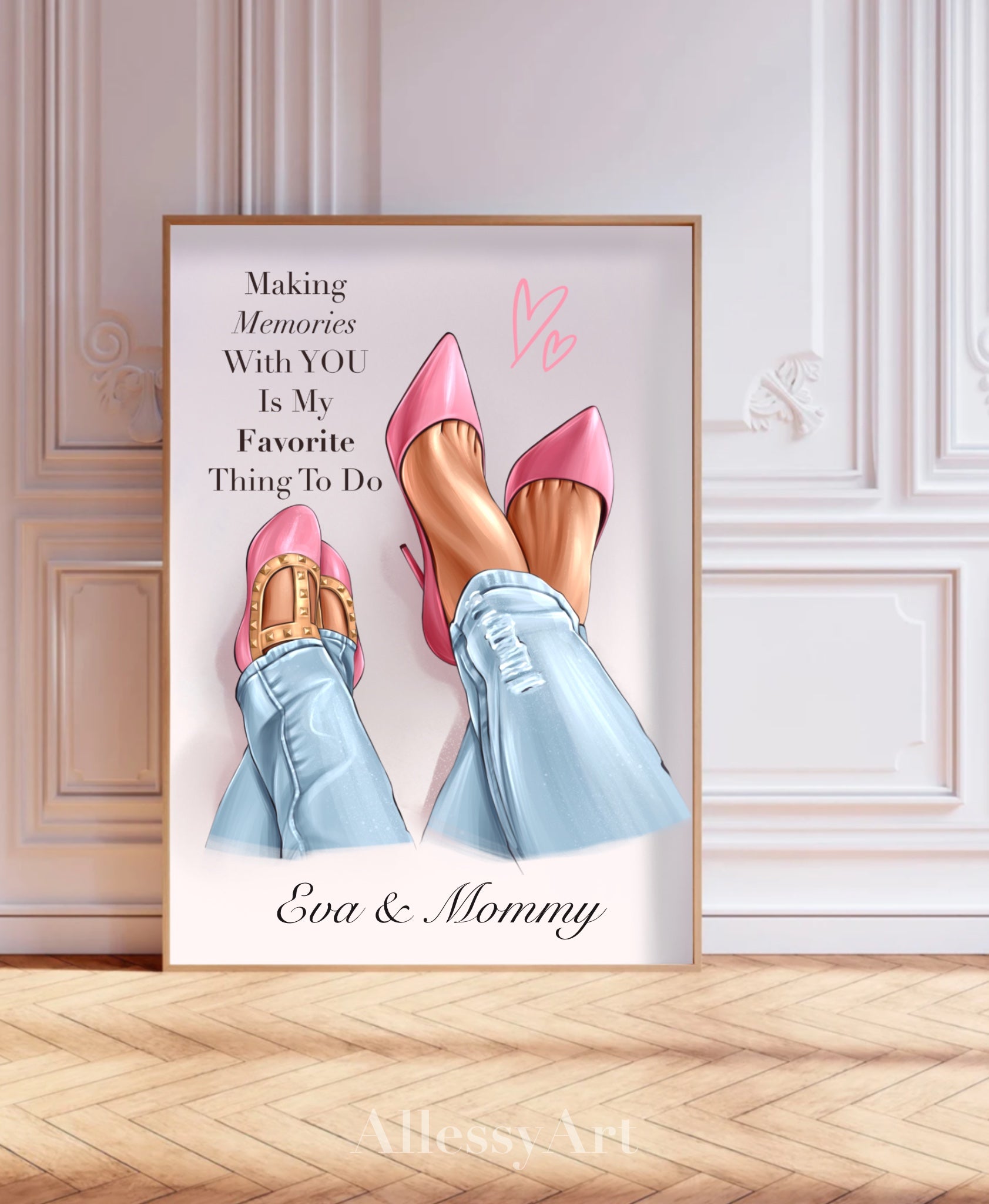Pink Shoes “Making Memories With You Is My Favorite Thing To Do” Poster - I Love You Mom - Mom Life Prints. Semi-Custom Personalized Wall Art