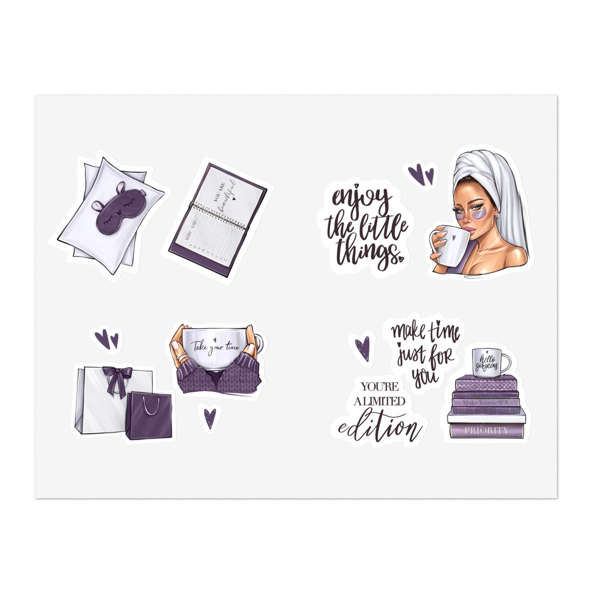 Purple Sticker Sheets - Self-care, self-LOVE, self-Time stickers by AllessyArt