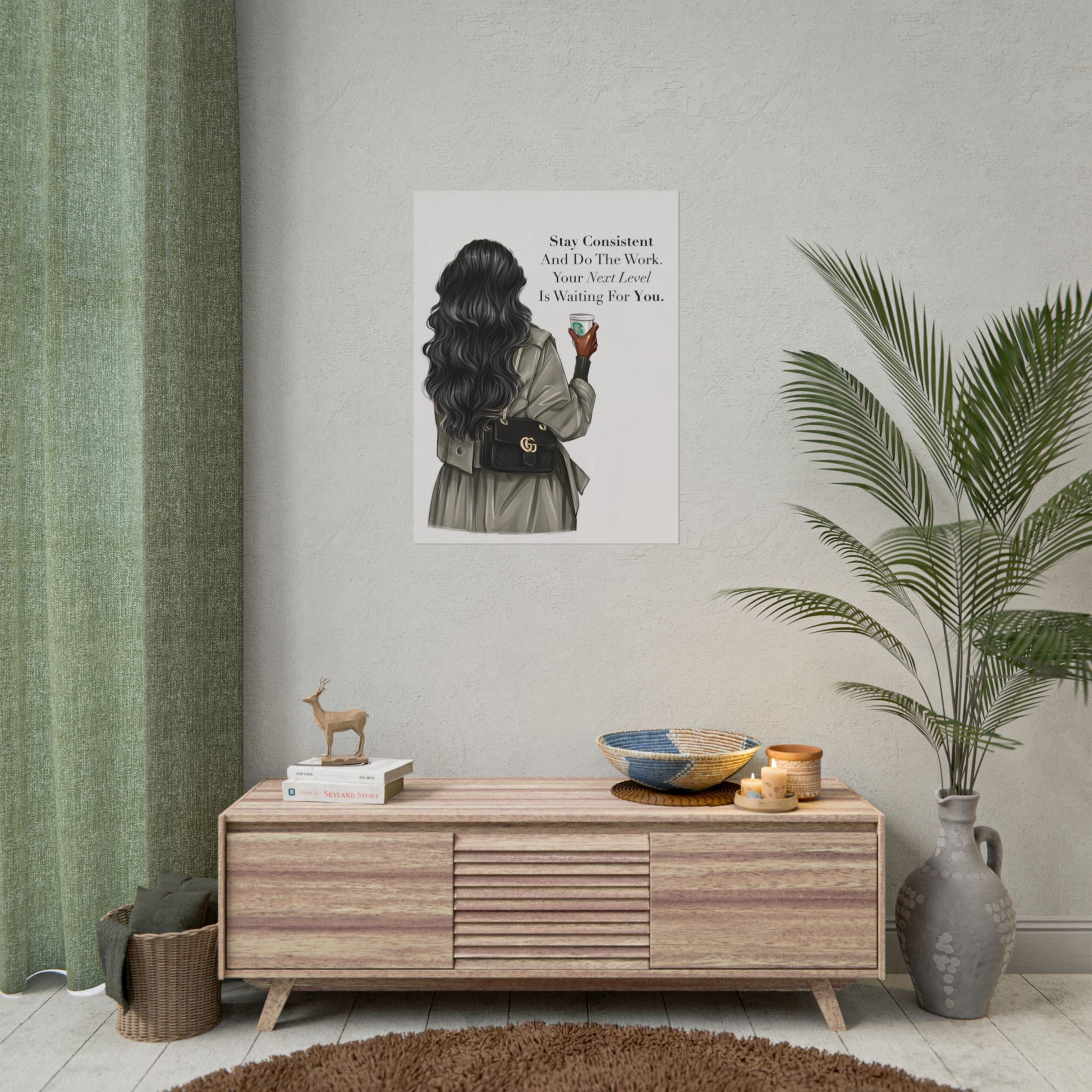 Poster. Just A Woman Collection. Stay Consistent. Your Next Level Is Waiting For You.